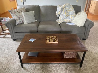 This coffee table exceeded my expectations. It looks well made and feels sturdy. The color is beautiful, dark brown but not too dark. I was looking for a farmhouse/industrial coffee table and this was perfect. The hardware was missing but Simpli Home responded right away and sent me the new hardware. Great customer service. Would highly recommend this table and Simpli Home!