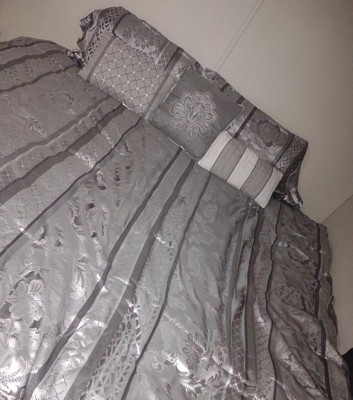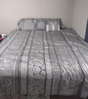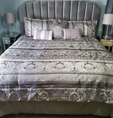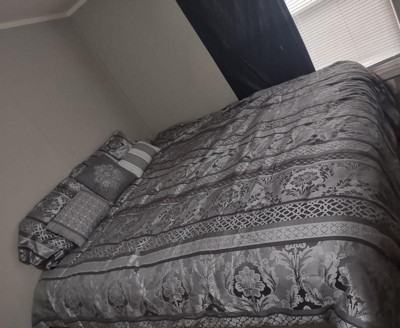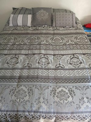 [This review was collected as part of a promotion.] The Bellagio 7 piece Jacquard Comforter Set that I received complimentary from Influenster is even more beautiful once I took it out and set it up on my bed. I didn't add the bed skirt just yet but I will later. It has several beautiful Shades of grey that compliment each other perfectly and it is very comfortable and cozy.