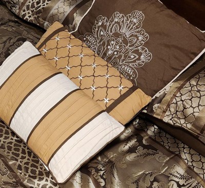 [This review was collected as part of a promotion.] This is a very nice 7 piece comforter set that offers a luxurious and extravagant but traditional update to your room. The color scheme and the design are both sleek and stylish, adding a lavish feeling. The throw pillows have a nice design that correspond back to the comforter, and they compliment each other. Would have loved more firmer pillows, but these are good.An included bed skirt gives the comforter set a truly finished look. The pillows and bed skirt bring everything together without adding too much bulk or taking up too much space on the bed. It just fits perfectly. Love that its machine washable, so easy to maintain, and can spot easily clean throw pillows. Very comfortable and cozy, and I definitely recommend it.