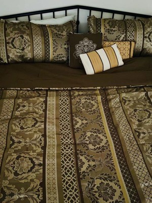 7pc California King Mirage Polyester Jacquard Comforter Bedding Set Brown