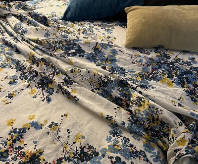 These sheets were exactly what I was searching for. I love the beautiful floral pattern and colors. After washing, they are soft and so comfortable for sleeping. They have a thick elastic band edging the sheet so they stay on the bed better than any sheets I’ve owned previously. Well worth the cost. They go perfectly with my new gold comforter as well.