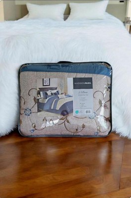 [This review was collected as part of a promotion.] I've had the Madison Park - Serene Embroidered Seven Piece Comforter Set on my guest room queen size bed for a few weeks now. Very elegant look with a satin like material. Warm, rich colors and comes complete with comforter, bed skirt, shams and three decorative pillows. Nice weight and very soft.