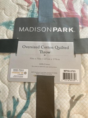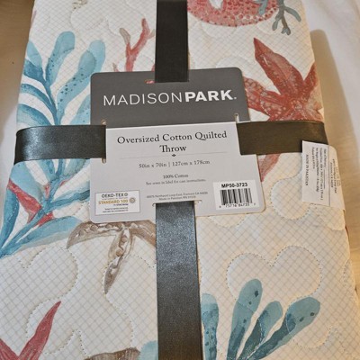 [This review was collected as part of a promotion.] Madison Park Pebble Beach oversized cotton quilted throw is absolutely beautiful. It matches my coastal beach theme in my bedroom. The quilted throw is an absolute must to add warmness on cool nights. The throw can also be used with a lounge chair, too. I highly recommend this beautiful throw by Madison Park.