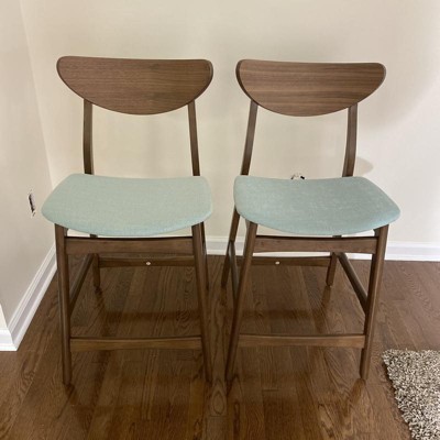 The stools themselves are great-they look exactly like the picture and the wood is beautiful. My two complaints are with the assembly of the product. When screwing the seat bottom onto the frame, there are no holes, you have to drill your own (thankfully I have a drill, otherwise manually screwing the screws in would have been a real pain). Second, the stickers marking each piece are IMPOSSIBLE to get off. I just had to order some goo gone in hopes of removing the leftover sticky residue.