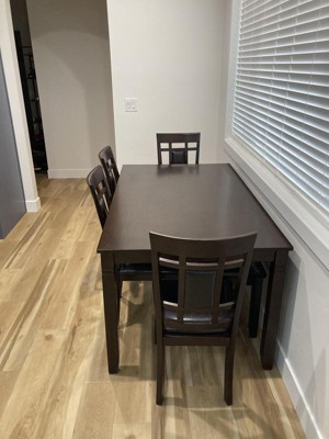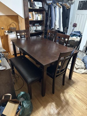 Price was right and it fits my needs perfectly for my medium sized dining area. Not a huge table but it can fit 6. Chairs are really comfortable and sturdy. I like the look of the bench but I’m thinking I might be better off with just getting two more chairs.