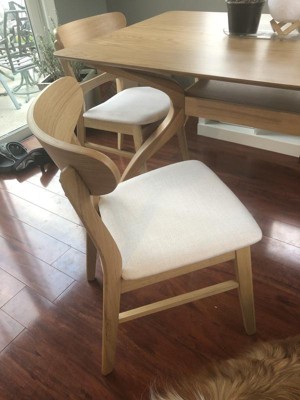 Christopher Knight Home Set of 2 Idalia Dining Chair Light Beige/Walnut : Mid-Century Modern, Rubberwood Legs, Polyester Upholstery