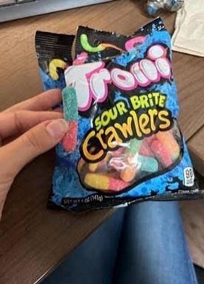Trilli sour candy is one of the best candy I had in a long time the flavors pop up it’s sour and sweet it’s a lot that come in the bag and have really cool colors that makes it fun to eat