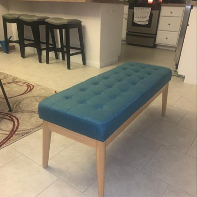 I am in love with this bench. Using it as a footstool/coffee table, in front of my navy blue couch. Matches my Tamsin Mid-Century Club Chair Dark Teal perfectly. So thankful I finally bought this. Fantastic size, even for small apt living. Finally made my living room look complete. Five stars across the board.