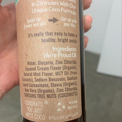 This taste so good, a combo of coconut and peppermint. It has helped me with gum issues. It is my favorite mouth wash and the most effective one I have found. Only down side is, it is a bit pricey.