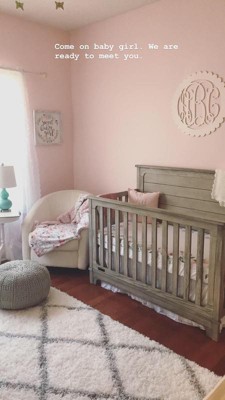 This pouf is perfect for our nursery! We had a gliding ottoman, and I was nervous when my little one started to push up on it that she’d fall or hurt her hands in it, so I showed a lot for a pouf. It turned out to be a great color, height, size and texture for us. Love it! *I did wipe it down with a versatile household cleaner just in case as it was a little dusty when it arrived, but would’ve done that regardless. *there were some little strings sticking out when it arrived as well and tucking them under the nit has worked fine for that.