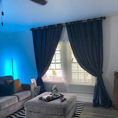 Target had the best price for these heavyweight velvet panels. It comes with two in a pack and the length we needed. I first ordered the silver but it was not the same as pictured so I returned them and ordered the dark gray and they are PERFECT! I hope this helps anyone stuck between the silver or dark gray, the dark gray has a light silver tint and it's not as pictured but other than that we love them. Looks very well made!