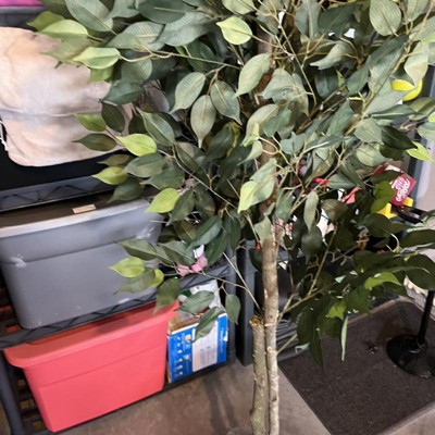 6' Artificial Ficus Tree in Embossed Metal Base (Square) – LCG Florals: Indoor Polyester Foliage, No Assembly Required