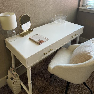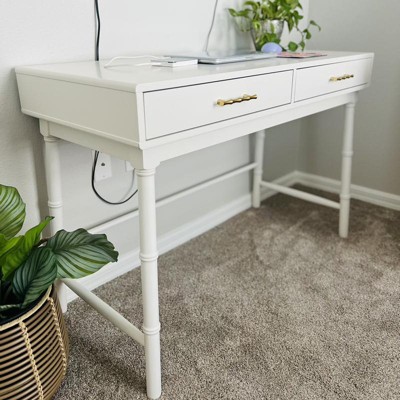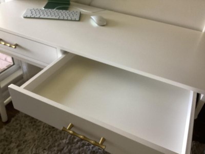 Oslari Wood Writing Desk with Drawers White - Threshold™: Gold-Tone Hardware, Home Office Furniture