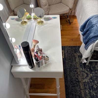 Love the design. I was wanting a vanity in my room and this just the most perfect fit for my space! Shipping was fast and everything went together smoothly!