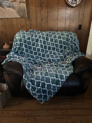 Electric Heated Ogee Printed Oversized Throw Blanket 60x70" Aqua - Beautyrest