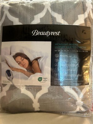 [This review was collected as part of a promotion.] The heated Ogee throw from beauty rest is an average size is 60 x 70. It is soft to the touch and perfect for snuggling on the couch with. This blanket has three controls that you can modify to your liking. The color is perfect for my decor. My only small issue is the control cord could use a little more length. It either hangs pulling at blanket or I end up with it at my side or back or feet depending on the which rotation.