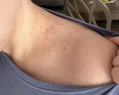 Caused an itch where I applied it, eventually turned into this rash. Everywhere I applied it I got the rash, but because my pain was mostly on the shoulder/neck part (slept wrong) that’s where the rash is the worse.