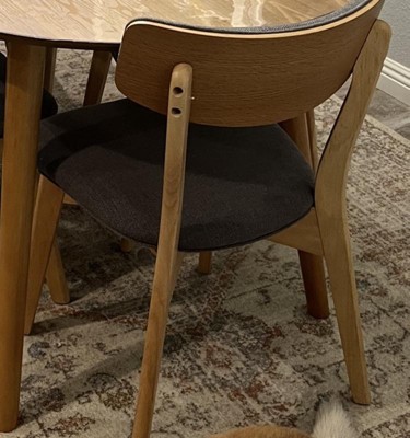 Hello Kimberly, Thanks for taking the time to share your feedback. We are truly sorry to hear your dining chair developed damages within the short-time of your ownership. We understand that this may be frustrating, and we apologize for any inconvenience. However, we appreciate you bringing this issue to our attention. We take these matters seriously and work quickly to resolve any issues our customers face. We would like the opportunity to talk and investigate your feedback further. May you please contact Target's Customer Support Team for assistance and possible options to remedy this problem? We hope to resolve this issue as soon as possible, thank you!