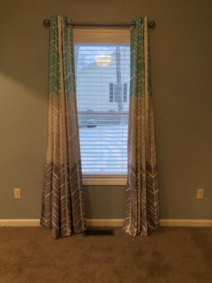 Really love these curtains! Love that they are 50" wide, so I only needed 2 panels - I ordered 4 to be sure (and to be sure the colors would match if I needed more than 2), but they look great. Make sure you look at all the picture - they are pretty much as pictured. About the colors - the aqua is not quite as bright (leaning towards teal) and the middle color is taupe; bottom color is grey and looks just like the enlarged photos. They look great in our guest room and really block out all of the light.