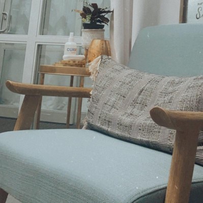 This chair is a nice mix between mid century and farmhouse. It is a beautiful chair but it is very very firm. I have had it one week and it does seem to slowly be breaking in. As long as I use an ottoman I am able to sit in it for long periods to read. I don’t know why but the ottoman makes the chair comfier lol