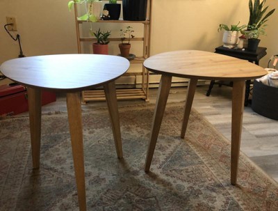 Very attractive piece in our mid-century modern living room. Also, you can't beat the price. I've had this end table for over a year and it's held up very well, no complaints!