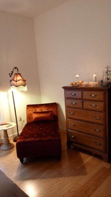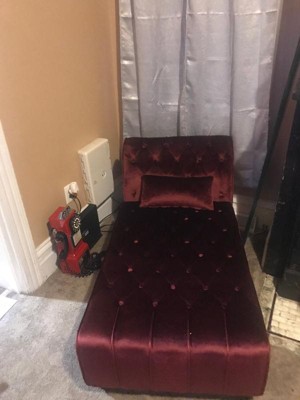 This chaise is exquisite, comfortable, and a great addition to my sitting area! The garnet color is beautiful, and the velvet material and tufting elegant!!