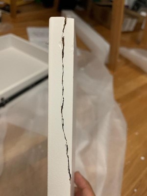 Broken at multiple places where there is a groove to insert thin panel. Can’t trust the material tonhold weight of files. Paint work on top is not matching rest of the cabinet.