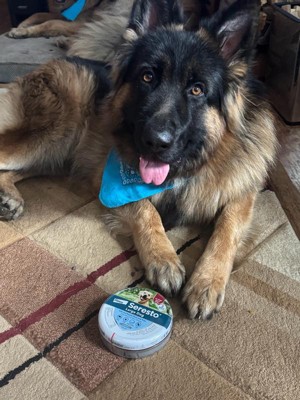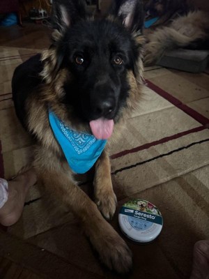 [This review was collected as part of a promotion.] The Seresto dog collar fits our long haired German Shepherd puppy’s neck with no issues. It was easy to put on and so far it hasn’t loosened when he scratches his neck. I worried about that happening since it has more of a sliding buckle than a prong or tab to keep it in place. The collar doesn’t have a smell and doesn’t seem to irritate him any. iIt’s said to be vet-recommended and last up to 8 months so only time will tell if it’s worth the price tag.