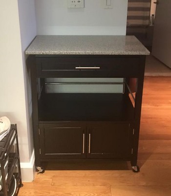 We put the whole dang thing together and the drawer will not fit in. The drawer mechanism is too wide and the way it is mounted the screws block the drawer from closing. We are trying to decide if we can somehow finagle it to work, or we’ve wasted our time putting together a poorly designed island that we will have to deconstruct and send back. Otherwise seems like a fine island, nice granite counter-top, good price, but if you don’t have someone in the house handy enough to force it into working, don’t waste your time. :/
