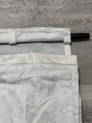 [This review was collected as part of a promotion.] Loving the Cassius Marble Jacquard Total Blackout Rod Pocket/Back tab curtain panel. The rod tab went easily over my 1" rod, also I like how the tabs are on the back side of the panel and how I could use just one panel on a single size window. I got this curtain a few weeks ago as I was having trouble getting and staying asleep due to street lights, neighbor's house lights and moon light. I was doubtful that any thing could completely block out the light but was wrong. Excellent blocking out any and all light. The color Jacquard blends nicely with my wall color. The long length makes the room feel more glamorous and comfortable. I would recommend this curtain panel to anyone needing complete room darkness. I am sleeping so much better now.