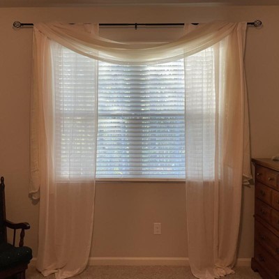 It took me soooo long to find scarf drapes that are not wide yet long enough to go into my bedrooms large built in bench window. They are sheer but not as soft which is fine for what I used them for:)