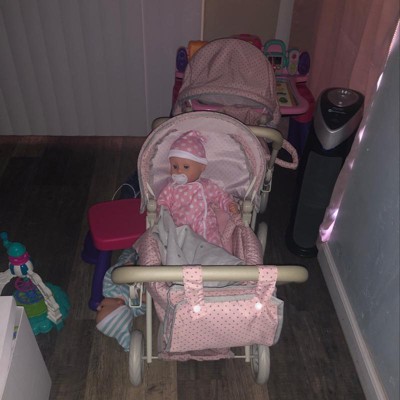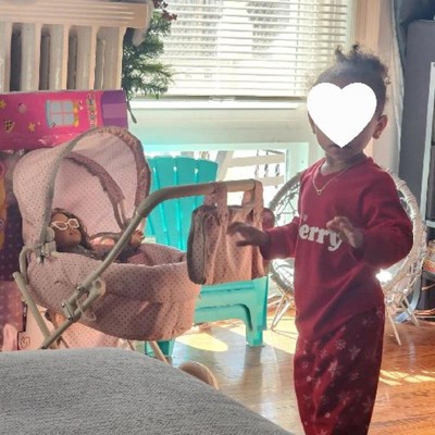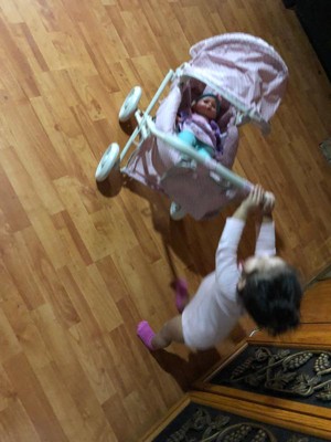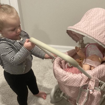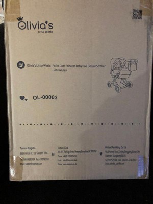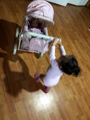 [This review was collected as part of a promotion.] I was very fortunate to receive Olivia's Little World - Polka Dots Princess Baby Doll Deluxe Stroller - Pink & Grey to review. To say my daughter loved it is not saying enough. We both likes that the bassinet is removable. The colors are cute. Perfect size for my daughter.