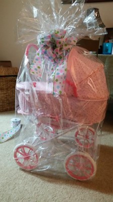 Beautiful! I buy these and fill them with gifts for a baby shower and wrap it like a gift basket. Stunning and the little girl also has a baby buggy to use in a year!!