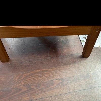 • A: The legs of the table are finished in a warm walnut color.
