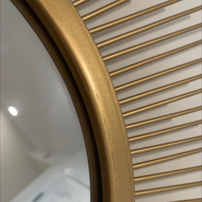 The mirror itself is not of good quality, it’s small and the reflection is not very sharp. It’s ok to decorate the wall. The gold finish is more like bronze. The rays are metal and well made, no complaints here, but there are little scratches on the rim.