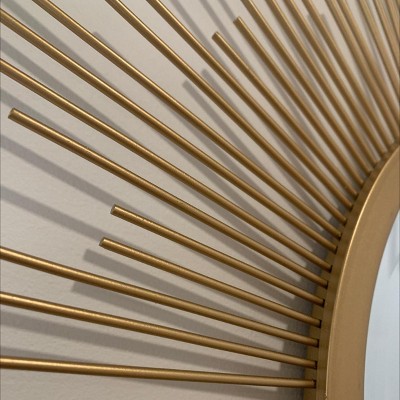 23" Metal Sunburst Wall Mirror Gold - Stonebriar Collection: Antique Finish, Boho Style, Easy to Install