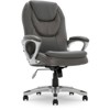 For more than 75 years, Serta has been an industry leader in comfort products worldwide. That tradition of innovation and quality continues today. From a brand that is synonymous with quality, comfort and style, the Serta executive office chair is upholstered in soft and durable Smooth Black leather with contrasting seams and stylish mesh accents. This chair features soft pillowed headrest & deep layered body pillows which offer the body a serene and tranquil seating experience. The contoured lumbar provides exceptional support for the lower-back, while the sculpted iridescent silver painted arms have pillow soft pads which provide added hand, wrist, and forearm comfort. The waterfall seat edge is designed to lessen pressure on the back of the legs, and increase circulation, to reduce fatigue and increase working focus. The pneumatic gas lift adjusts the seat height by a simple flick of the lever. Pulling out the same handle will unlock the recline mechanism and allow you to lean back in comfort. The recline resistance can be adjusted with a turn of the tension knob on the bottom of the seat. Smooth rolling multi-surface dual wheel casters provide easy access to your surrounding work area. The heavy duty five-star base meets or exceeds rigorous BIFMA testing standards up to a 250lbs weight capacity. Measures 25.75” wide by 28" deep by 42.25"-46" high. It is delivered in 1 box measuring 28.25" long by 14.75" wide by 26" high. 1-year limited warranty. Product assembly is required. Designed in the USA. Manufacturer style number is 43673
