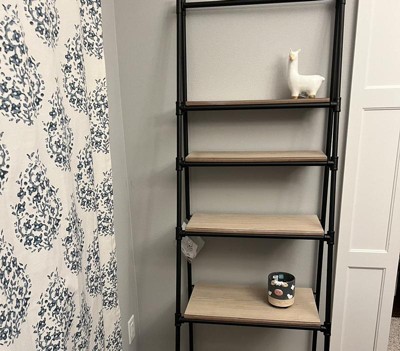 72" Metal and Wood 5 Shelf A Frame Book Stand Black - Olivia & May: Industrial Style, Fixed Shelves, Pine Surface