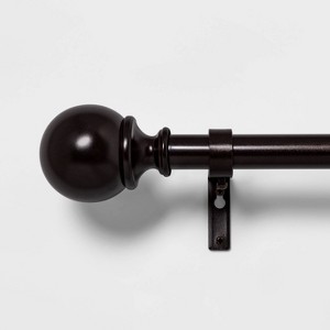 Easily bring effortless style to any of the windows in your home with the help of this sleek, stylish and functional Ball Curtain Rod from Threshold™. Made with sturdy metal for durability and stability, this curtain rod features large ball accents with curved detailing on the ends for a subtle touch of style and texture. With a range of sizes and finishes to choose from to meet your decor needs perfectly, this metal ball curtain rod is an easy way to give any room a style makeover.