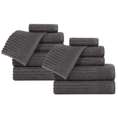 Madison Park 8pc 100% Cotton Highly Absorbent Bath Towel Set Black: Heavyweight Terry, OEKO-TEX Certified