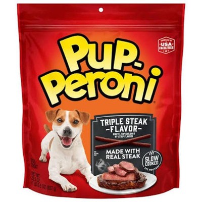 Treat your dog to the big beefy taste and mouthwatering aroma of Pup-Peroni Original Beef Recipe dog snacks! Real beef is the number one ingredient, so your dog gets delicious, high-quality protein in every bite. And in case that’s not enough to get your pup pumped — each treat is slow cooked for at least 2.5 hours. The brand’s slow cooking process helps retain moisture and intensifies the taste and aroma. The result is an irresistibly rich, meaty treat with a soft, tender texture dogs can sink their teeth into. It’s everything your dog wants in a treat … and yet, nothing you don’t. No fillers. No Red 40. Just the crazy-good soft dog treats your dog craves. Pick up a bag today!