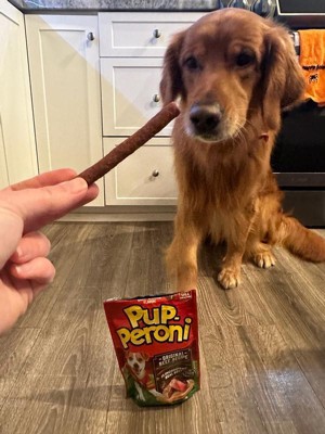 A: As a general guideline, we recommend you do not exceed one regular size stick of Pup-Peroni® per 10 lbs of body weight per day. We also recommend breaking our dog treats into bite-sized pieces.
