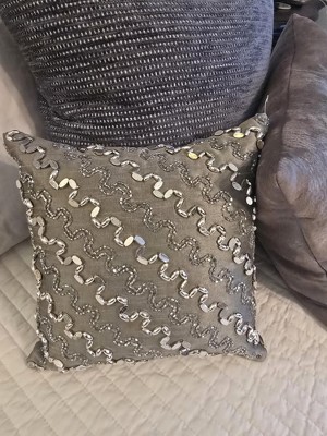 12"x12" Striped Square Throw Pillow Silver - Rizzy Home: Beaded, Cotton, Indoor Decor