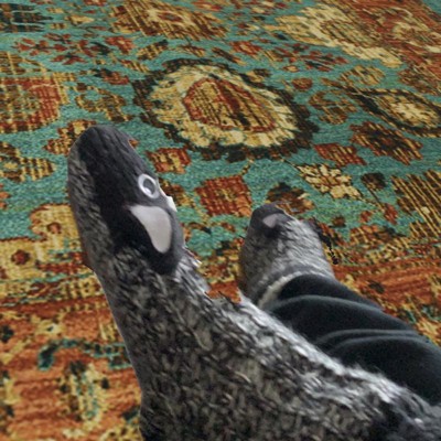 Giant rug, really soft. Awesome deal at 40% rugs sale. Hard to find size. Pretty, muted colors in multiple shades of blue and neutral tans. Using with a felted Parachute rug pad (also on sale). Definitely needs a pad. Higher quality than some.