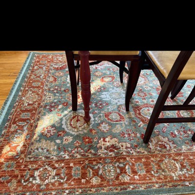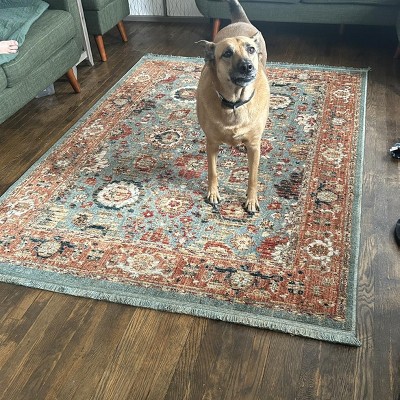 With an intricate print and a distressed finish, this Persian Woven Rug with Fringe Border from Threshold™ sets the perfect foundation for the rest of your decor. It's finished with fringe trim on each end for a textured, cozy look, and is available in a variety of pleasing color options that add a pop of cool color to your space. Consciously created with a premium recycled polyester yarn produced from post-consumer plastic water bottles, this innovative collection offers sustainable options that are as easy on the eyes as they are the world around us. Available in scatters, runners, and other popular sizes, this area rug is ideal for adding style to a variety of spaces in your home.