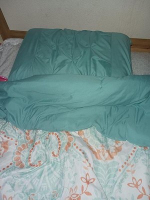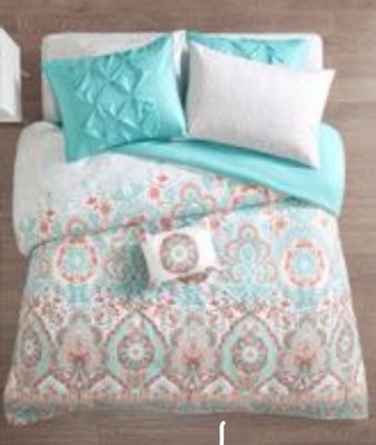 [This review was collected as part of a promotion.] My daughter likes her new comforter sheet set. She likes that everything matches really well. She likes the aqua pillow. I like that the sheets and pillow case wash up really well. The sheets are easy to put on and take off her bed. She likes that the sheets, comforter, and pillows are really soft. The set looks great on her bed. I like that this set is great for all ages. She can use it even when she is an adult some day. I recommend this product.