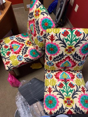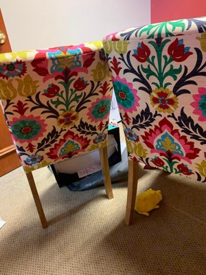 Super cute pattern, Priya Blue, but not the most comfortable. Also, the chair has a shorter back than most parsons chairs so make sure you pay attention to the dimensions.