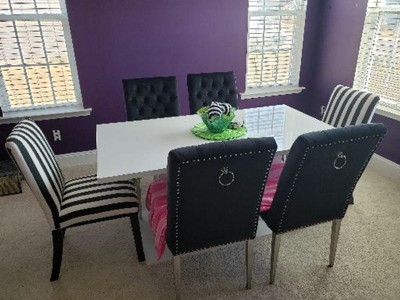 Matches my Beetlejuice themed dining room. Beautiful in person, but not as sturdy as I expected with the price point. They are cat approved.