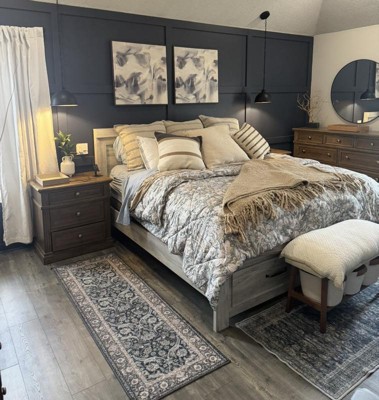 This bed frame is a popular choice among guests for its sturdy construction and beautiful design, which enhances bedroom aesthetics. Many appreciate the easy installation and the rustic farmhouse finish that complements various decor styles. However, some guests have experienced issues with the headboard stability and fitting of mattresses. Overall, it offers great value for those seeking a stylish and functional bed frame.