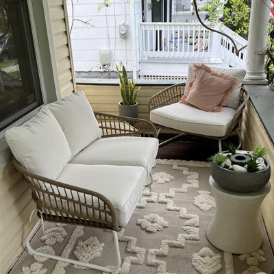 Finally got to put together my patio furniture in the PNW. Chairs, loveseat, rug, ottoman and side tables are all from target. Super comfy chairs and was able to put the entire together in less than 20 minutes. Since I am somewhere where it rains, I did scotchguard the cushions and buy a cover for the furniture. So far so good.